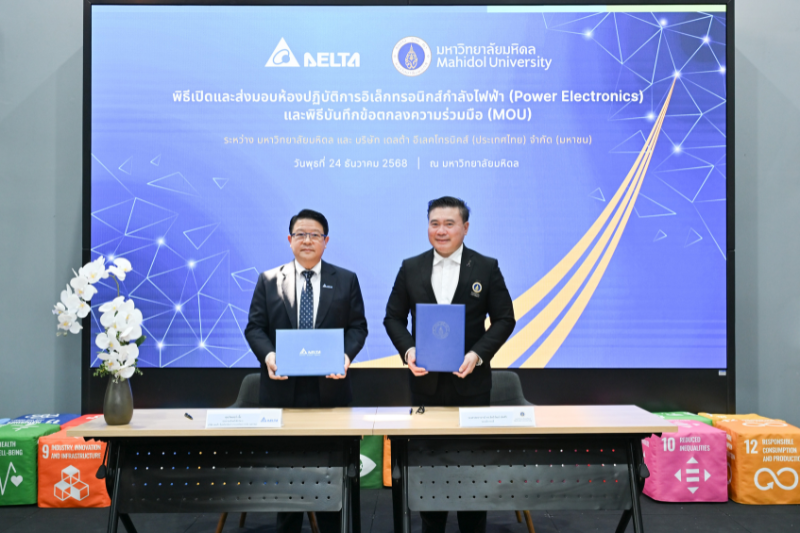 The launch event was attended by Delta’s senior management including Mr Victor Cheng, Chief Executive Officer of Delta Electronics (Thailand) PCL, and Professor Piyamitr Sritara, M.D., President of Mahidol University, along with key university leaders and Delta representatives.