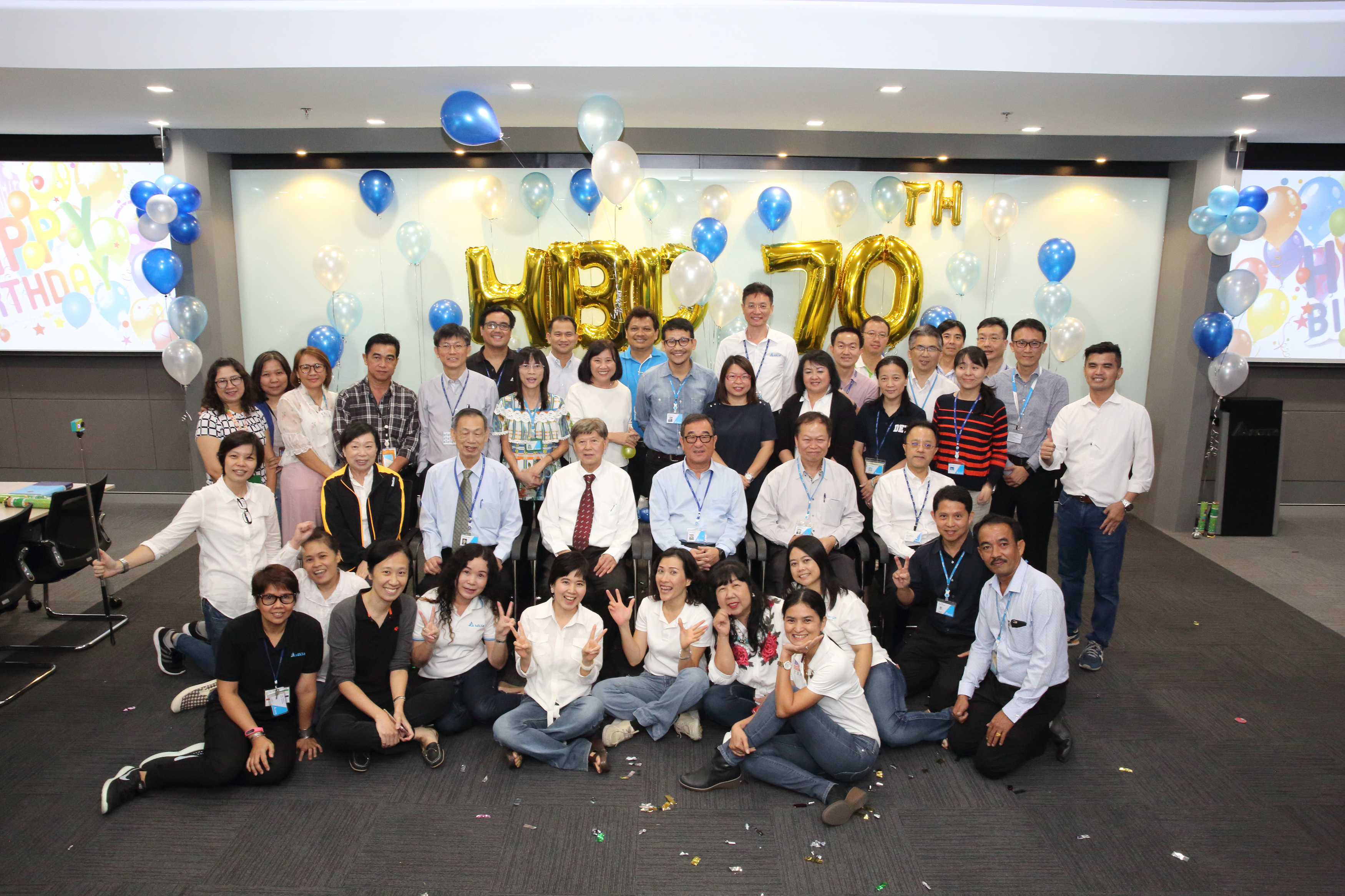 Surprise 70th birthday celebration organized by Delta employees for Mr. James Ng (fourth from left, second row).