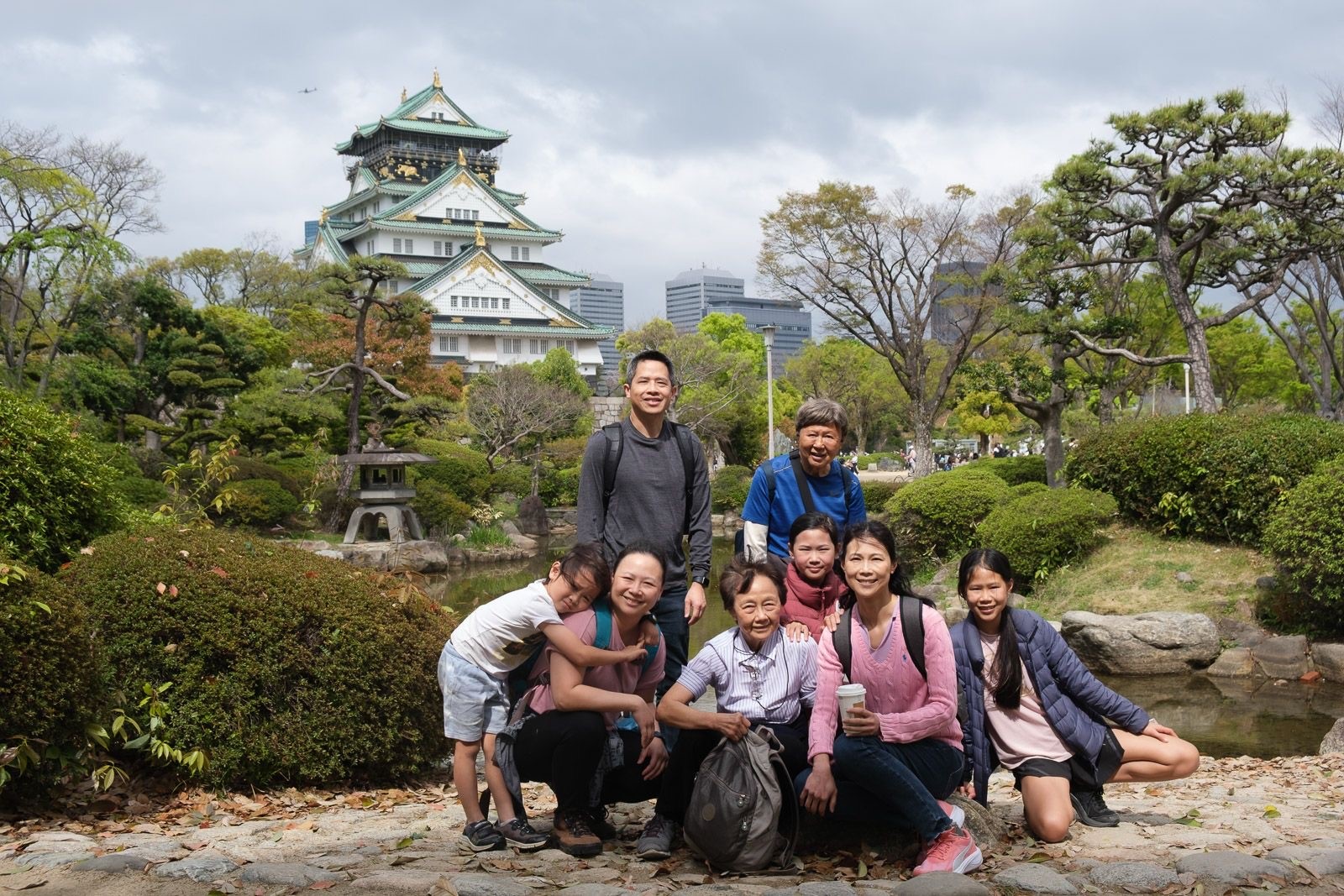 Mr. James Ng (second from left, last row) spending quality time with his family at the famous Osaka Castle in Japan